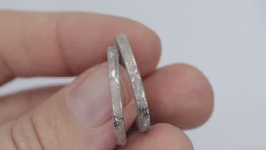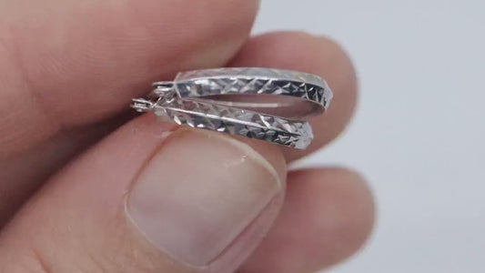 Creolen aus 14-karätigem Weißgold. Dünne Ohrhänger aus 14-Karat-Creolen mit strukturierter Gravur. st58/65