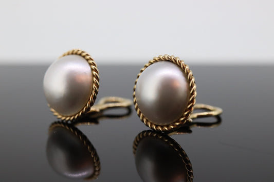 14-karätige, große MABE-Perlen-Ohrclips. Nicht durchbohrte Omega-Rückenclips Mabe-Perlenohrringe st(144)