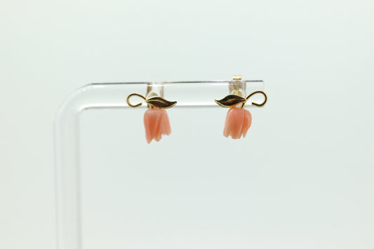 Korallenohrringe. 14-karätige geschnitzte Korallen-Rosenblüten-Ohrringe. Zierliches Design. M(45)