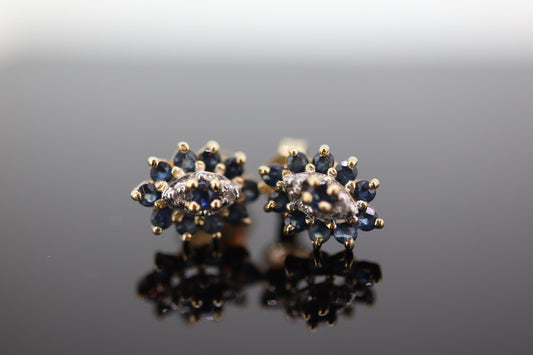 Halo-Cluster-Ohrstecker aus 10 Karat Saphir und Diamant. Saphir-Diamant-Halo-Marquise-Ohrringe. st(86)