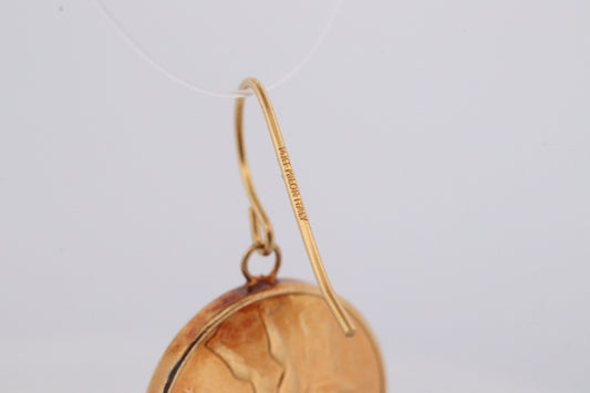 14-karätige Ohrhänger mit Anhänger. 14-Karat-Münzmedaillon-Ohrhänger. Runde Charm-Scheibenschichtung.