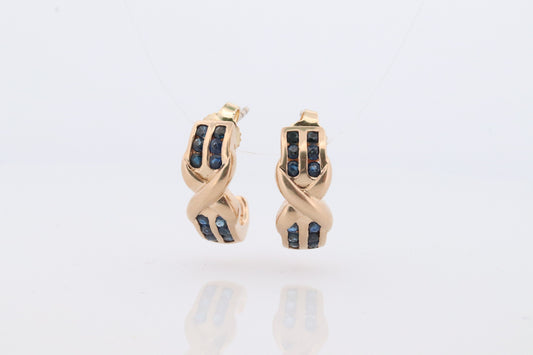 14-karätige Saphir-Kreuz-X-Ohrhänger. Criss X Channel Set Saphir-Creolen. XOXO Love Kiss Hug Ohrringe mit blauem Saphir.