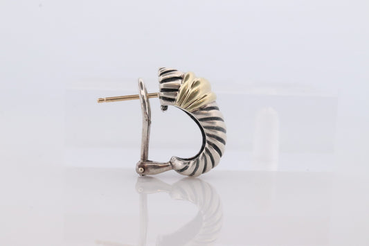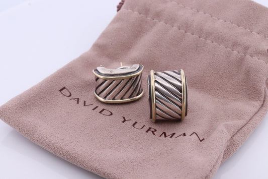 Schwere CABLE-Ohrringe aus Sterlingsilber und 14-karätigem Gold von David Yurman. Durchbohrte David Yurman-Ohrringe mit Omega-Rückseite