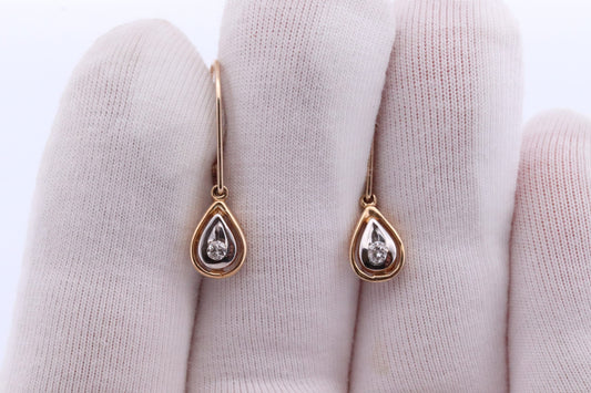 Ohrhänger mit 10 Karat Diamanten. Diamant-Tropfen-Diamant-Ohrhänger. Eingefasster Diamant aus Gelb- und Weißgold.