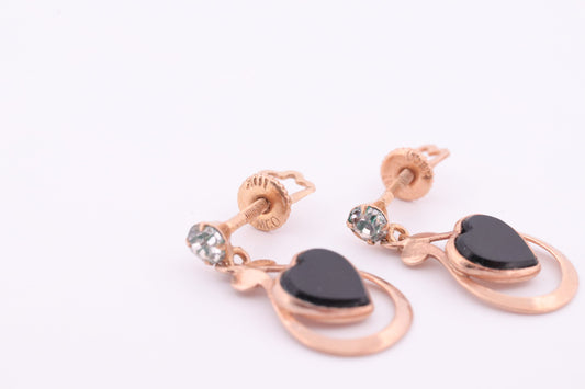10-karätige Onyx-Herzohrringe. Onyx-Herz-Ohrhänger. Esemco Onyx-Ohrringe.