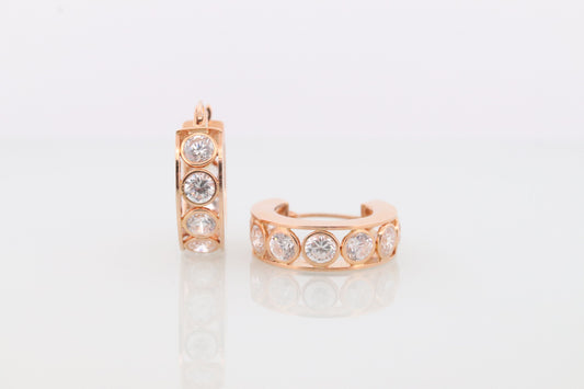 14-karätige CZ-Creolen. Creolen mit CZ-Lünettenbesatz und Diamanten. st(215)