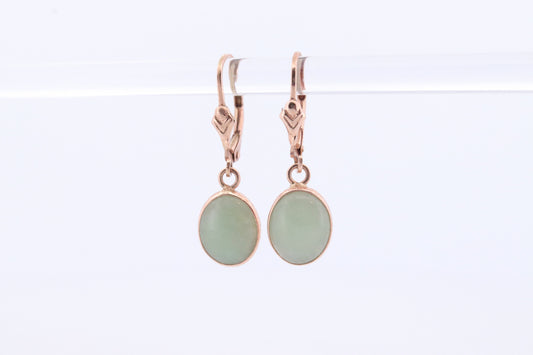 Ohrhänger aus 14 Karat grüner Jade. Ovale Jade-Ohrringe mit Lünette. st(78)
