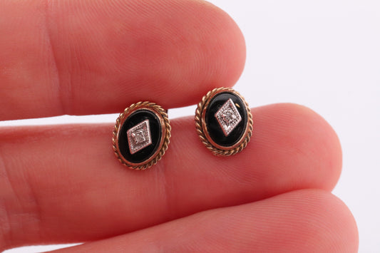 Ohrringe aus Onyx und Diamant mit 10-Karat-Goldfüllung. Art-Deco-Trauer-Onyx-Ohrringe. Ovale Ohrringe aus Onyx und Diamant. st(37)