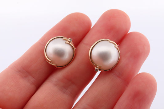 14-karätige große MABE-Perlen-Diamant-Ohrclips. Nicht durchbohrte Omega-Rückenclips Mabe-Perlenohrringe st(62)