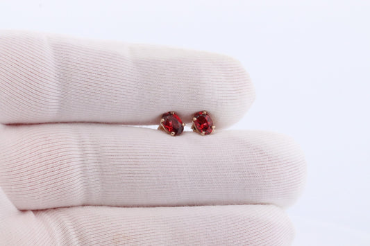 Ovale GRANAT-Ohrstecker aus 14-karätigem Gold. Kirschrote Granat-Ohrstecker. Minimalistische zierliche Ohrringe. st(42)