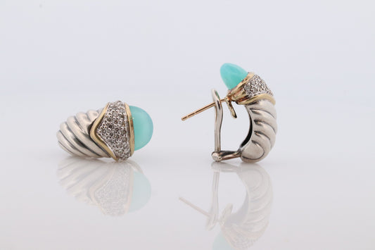 David Yurman Kabelohrringe aus 18-karätigem Sterlingsilber. Authentische David Yurman Diamant- und Chalcedon-EICHEL-Ohrringe st(403)