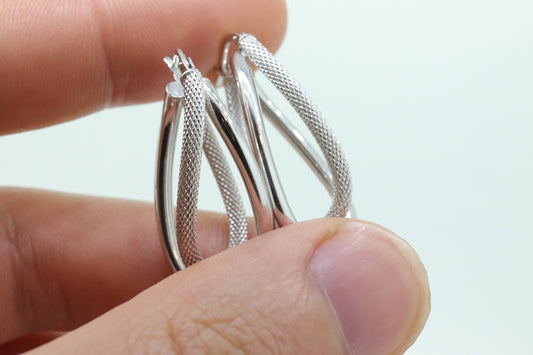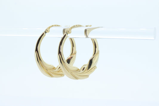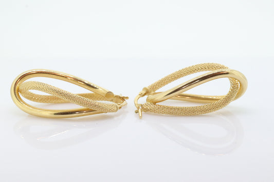 Hohle Creolen aus 14-karätigem Gold. Ineinander verschlungene Ohrringe mit strukturierter Schleife. MILOR Italien st74/75