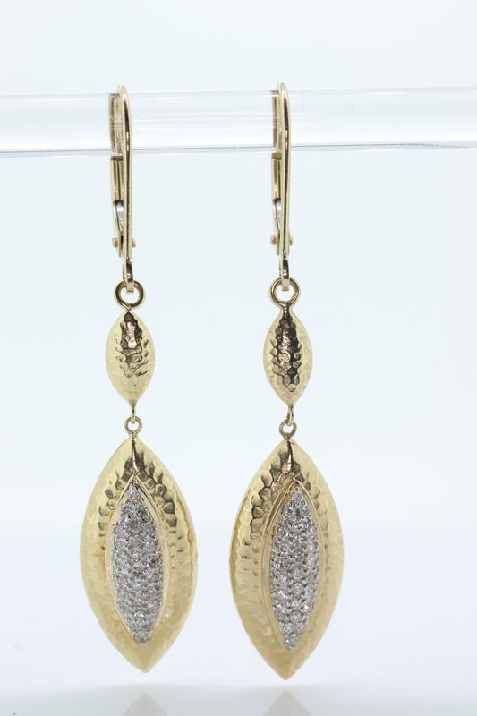 Ohrhänger aus 14-karätigem Diamant. Ohrringe im Marquise-Cluster mit gehämmertem und strukturiertem Diamant St(109/25)