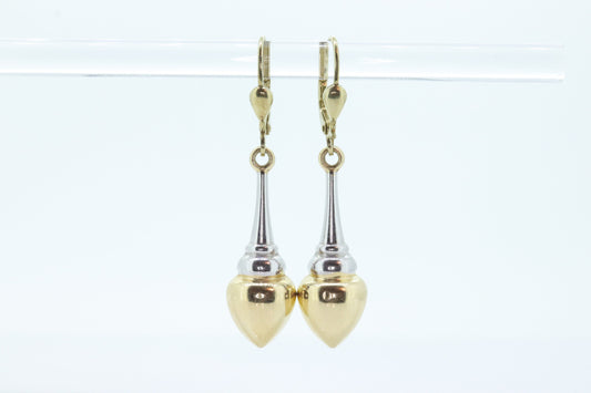 Hohle, baumelnde Ohrringe aus 14-karätigem Gold. Glänzende mehrfarbige Tropfen-Pole-Ohrringe. Milor Italien st105/50