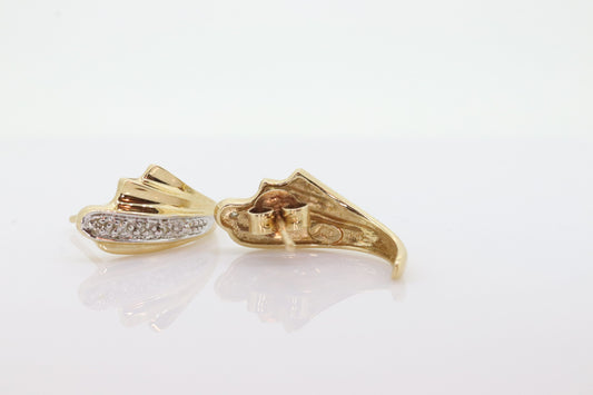 Ohrringe aus 10 Karat Perlen und Diamanten. Elegante und zierliche Perlen-Diamant-Ohrstecker. M(77/11)