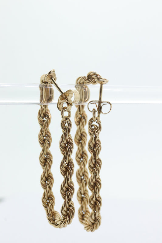 14-karätige Creolen mit Seilkette. Ohrringe aus 14-karätigem Gelbgold St(71/87)
