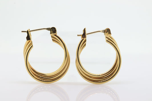 Creolen aus 10-karätigem Gold. Dreifache HOOP-Ohrringe aus 10-karätigem Gelbgold. Verdrehtes Design. . st63