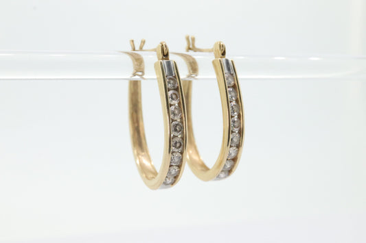 14-karätige Diamant-Creolen. Diamant-Creolen mit Kanalbesatz. Geschätzter Wert: 0,96 ctw – 1 ctw Diamanten