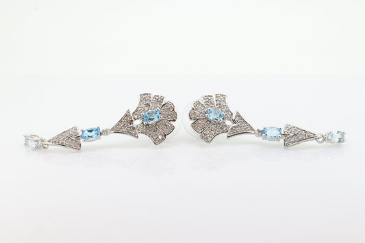 Ohrhänger aus 14-karätigem Blautopas und Diamant. Blautopas-Prinzessin-Ohrringe. 14-karätige Kronleuchter-Ohrringe. Lavalierstich(142)