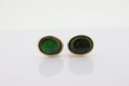 14-karätige Ammolit-Ohrringe mit ovaler Lünette. Ammolit-Fossil-Ohrstecker. st70