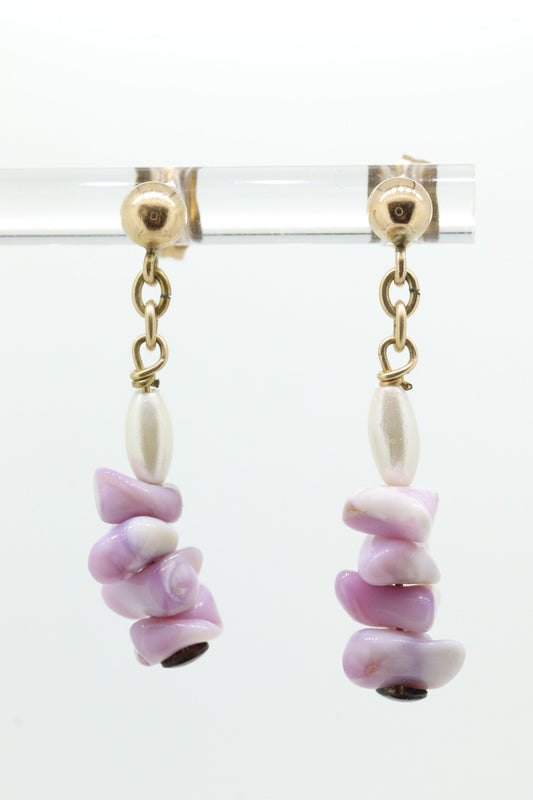 Ohrhänger aus 14-karätigem Gold mit Muscheln. Perlen-Lila-Muschel-Tropfen-Perlenohrringe. Muschelohrringe st(20)
