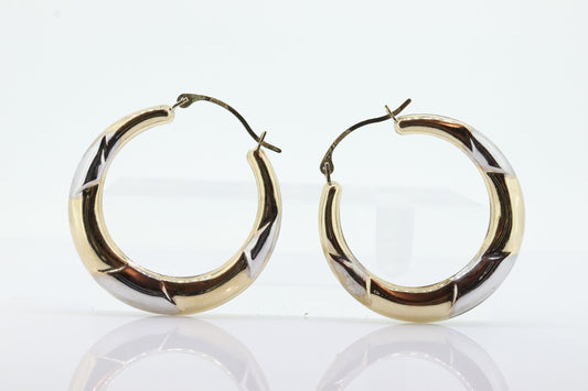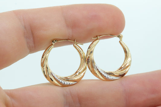 Strukturierte HOOP-Ohrringe aus 10-karätigem Mehrfarbengold. Mehrfarbiges Puffed Twisted Design. 10-karätige Creolen. st(51)