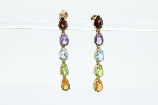 Ohrhänger mit mehrfarbigen Edelsteinen aus 14 Karat. Birnentopas Citrin Granat Peridot Amethyst Tennis Ohrhänger (st108)