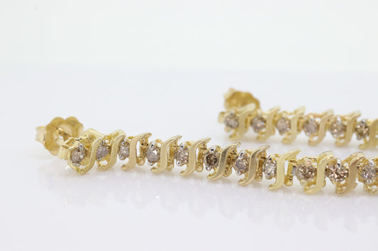 Ohrringe mit 10 Karat Diamanten, 3/4 Karat. Champagner-Diamant-S-Link-Tennis-Tropfen-Ohrhänger. 10-karätige schokoladenfarbene Fancy-Diamantohrringe. st(135)