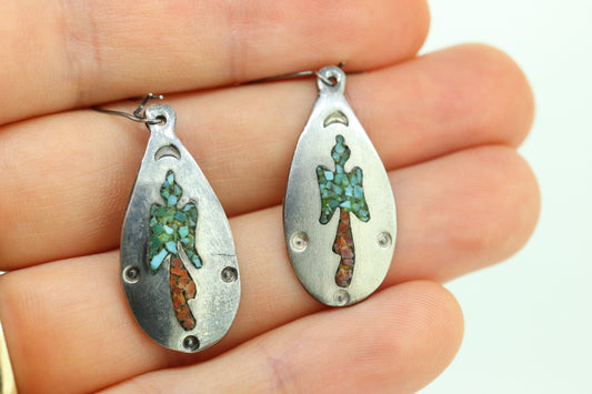 Navajo Zuni Phoenix Ohrringe. Türkise Spiny Oyster Inlay und Sterling Silber Löffel Ohrhänger (st14)
