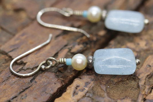 Ohrhänger aus Sterlingsilber mit Aquamarin- und Perlenbonbon-Tropfen. BOHO Ohrhänger st(3/45)