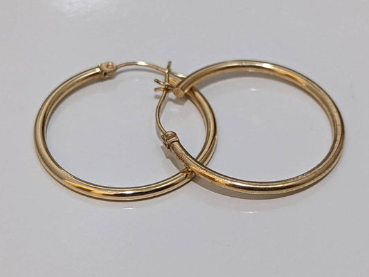 Creolen aus 14-karätigem Gold. Dünne Ohrhänger aus 14-karätigem Hoop Gloss.