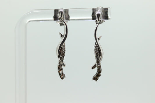 10-karätige Abschluss-Ohrringe mit Champagner und weißen Diamanten. Schokoladen-Diamant-Tropfenwirbel-Cluster. St(80/50)
