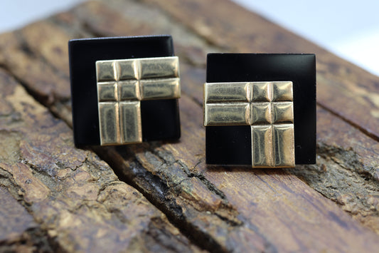 14k geschnitzte quadratische Onyx-Ohrringe. 14k Peter Brams Carved Gemstone Stud PBD Ohrringe. M (51/75)