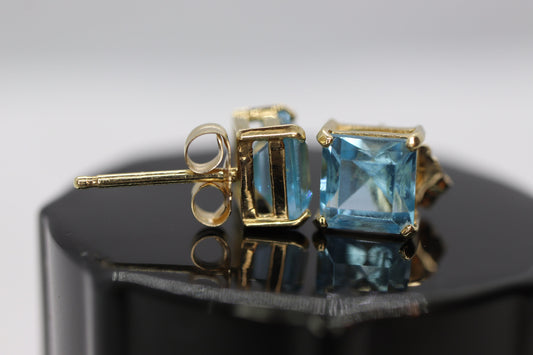 Ohrstecker aus 14-karätigem Blautopas im Prinzessschliff. Blaue Topas-Ohrstecker. st(24/92)