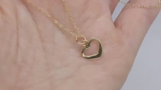 14-karätiger Anhänger mit offenem Herz. 14-karätige Kabelkette. 1 mm breit und 15 Zoll lang