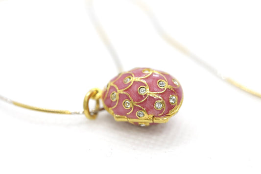 Mehrfarbige runde Omega-Halskette aus 14 Karat mit vergoldetem Emaille-Ei-Anhänger.