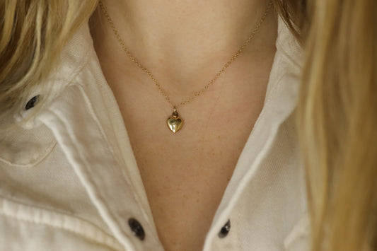 14-karätiger Puffherz-Anhänger. 14-karätige Kabelkette. 1 mm breit und 15 Zoll lang