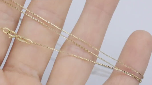 14k zierliche Box-Kette. Halskette mit Kastenkette aus 14-karätigem Gold. 31 Zoll, 1,3 Gramm, 1 mm breit