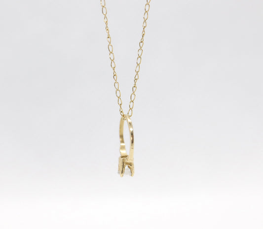 14k Verlobungsring-Charm-Halskette. Winziger Verlobungsring mit CZ-Anhänger. 18-Zoll-Rolo-Halskette