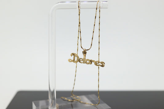 14-Karat-Delores-Namensanhänger. DELORES Anhänger und Halskette aus 14 Karat Gelbgold. st(81)