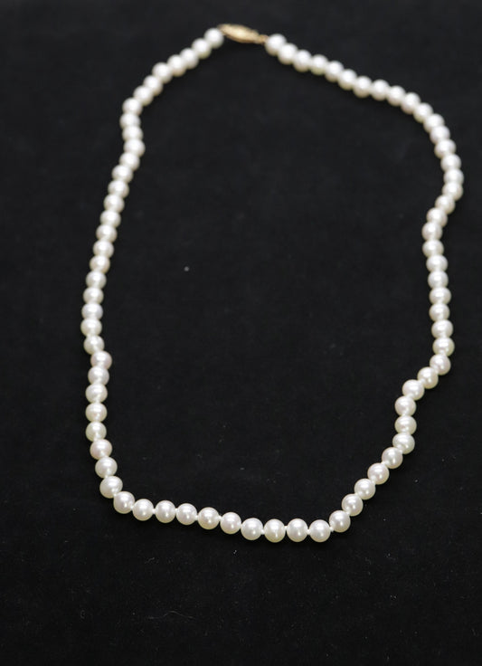14k Pearl Necklace. 16in length 6mm freshwater pearls