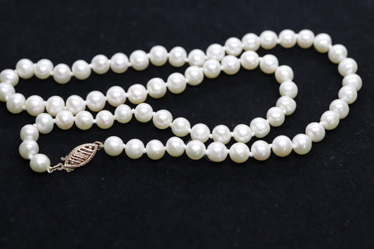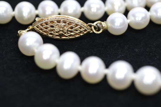 14k Pearl Necklace. 18in length 6.5mm freshwater pearls
