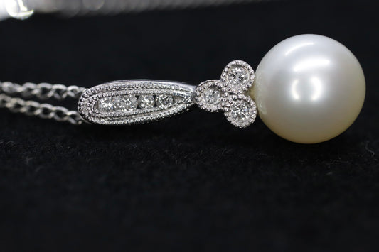 Perlen-Diamant-Anhänger und Halskette. 10-Karat-Perlenanhänger mit Kabelkette (14)(00,90)