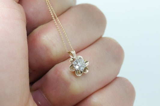 14-karätiger Diamant-DAISY-Anhänger. 14-karätiger Diamant-Gänseblümchen-Buttercup-Blumenanhänger und Halskette. st(110)