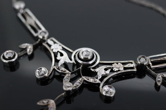 Antikes Diamant-Lavaliere. Sterlingsilber mit einer Lünette aus Rohdiamanten. Jugendstil-Ära st170