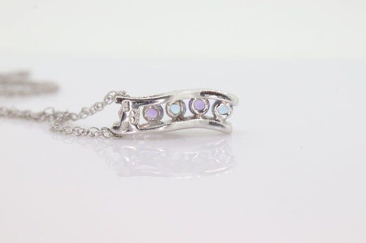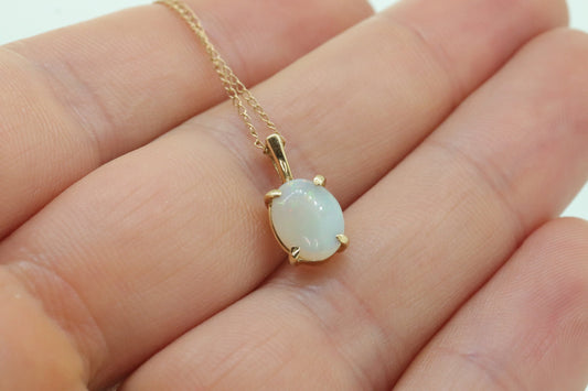 14-karätiger Kristall-OPAL-Anhänger. Ovale Cabochon-Opal-Charm-Halskette. Krappensatz Solitär. st(44)