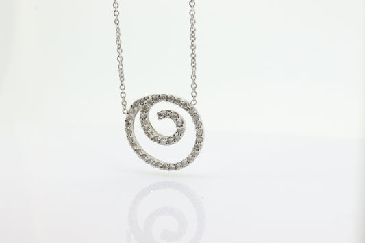 14-Karat-Diamant-Pflasteranhänger. Spirale, offener Kreis, Eternity Circle of Life Pave-Diamant-Anhänger-Halskette st(104)
