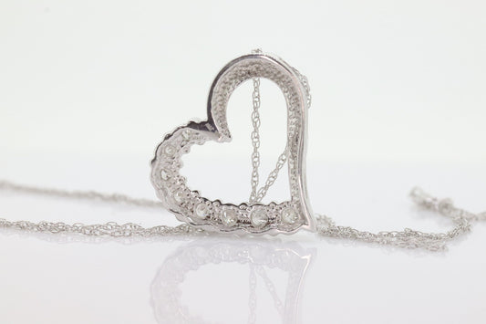 10-karätige Diamant-Halskette mit offenem Herz. Pavé-Diamant aus 10 Karat Weißgold. Kreis des Lebens Herz Halskette. st(67)