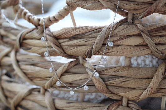 Mehrschichtige Halskette mit 14-karätigen Lünetten-Edelsteinen. Wunderschöne Diamant-Edelstein-Halskette (CZ). M. (93/50)
