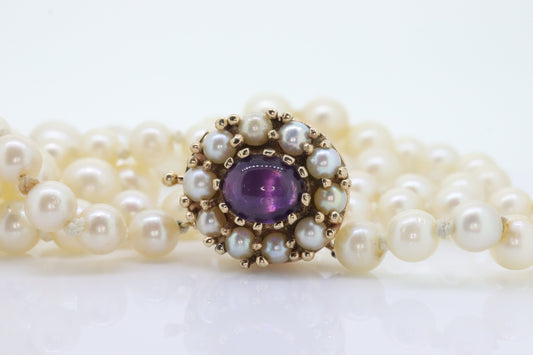 Viktorianische 6-10-mm-Perlenkette mit Amethyst- und Perlensamen-14-Karat-Verschluss. 24 Zoll